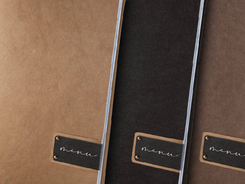 Portacartas formatos A4. 23,2x31,8 cm. Etiqueta con la palabra "menu" por defecto o personalizada con el logotipo de tu empresa.