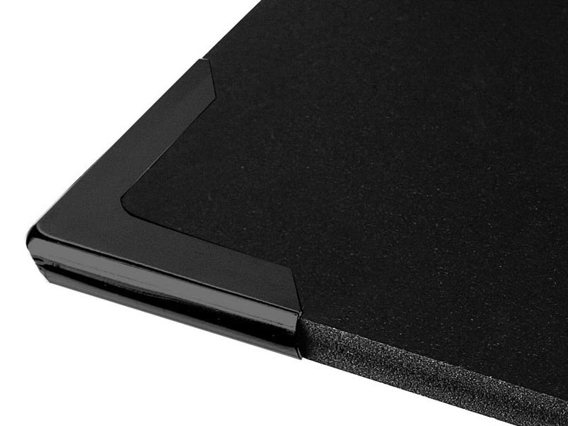 Interior: PVC atóxico 5 mm espesor, cantos de acero. Exterior: PVC multicapa y aluminio, 3 mm espesor, 1 cara brillante y la otra mate.