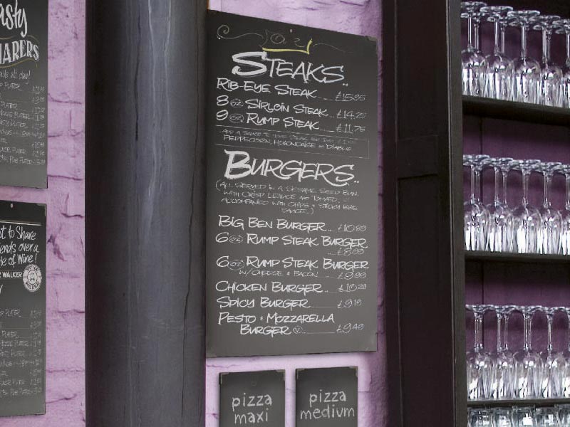 25 x 27 x 6 cm. Pizarras siluetas con base de aluminio. Marcador de tiza líquida incluido.