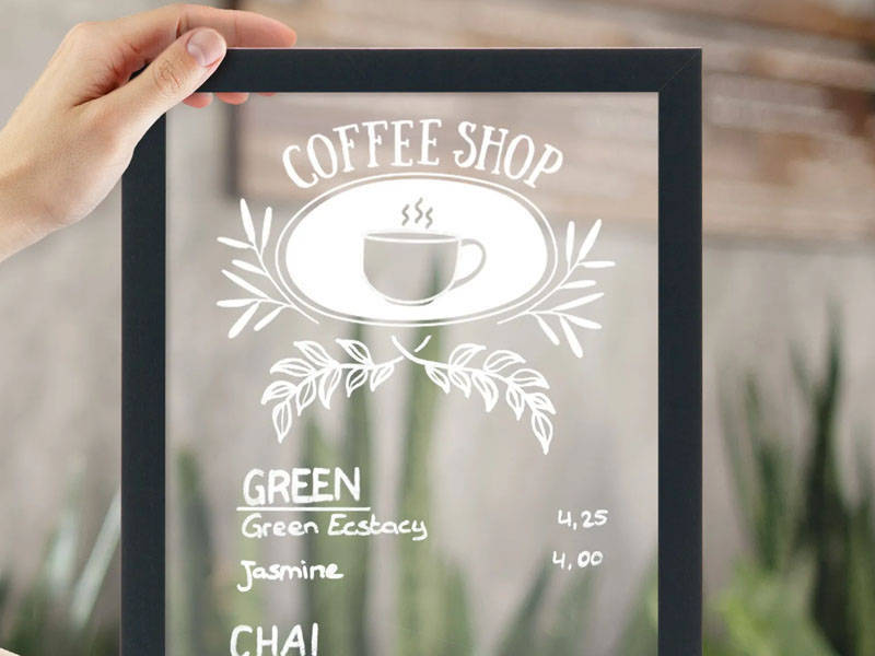 Marco negro y superficie transparente. Pizarras de bajo coste y alta calidad con un marco de diseño de madera dura con superficie de escritura de doble cara. Fácil de limpiar. Resistente a rayos UV, golpes, manchas y rayones.