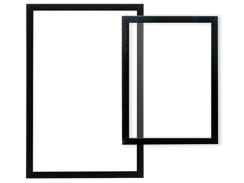 Marcos de acrílico utilizables sobre 3 lados, fáciles de limpiar. Transparentes.