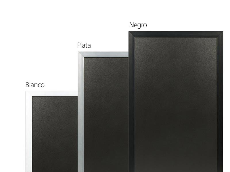 Material plástico que no se raya. Uso de tizas o rotuladores al agua. Marcos de madera resistentes al agua y al sol.