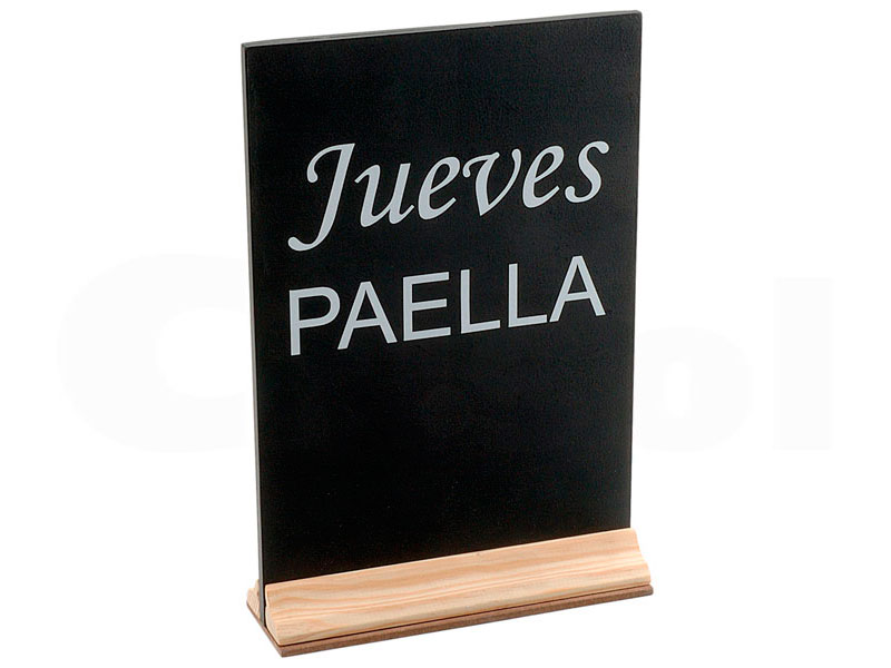 Pizarra de sobremesa de madera con caballete. Medidas 26 x 15 cm. Los caballetes individuales incluyen rotulador tiza blanco.