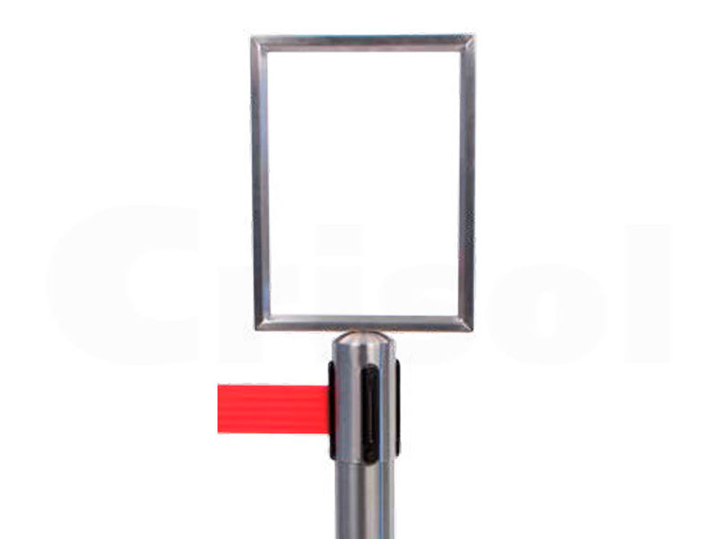 Postes separadores de acero inoxidable con sistema de cinta retractil de 2,1 metros de largo. Altura del poste 1 m.