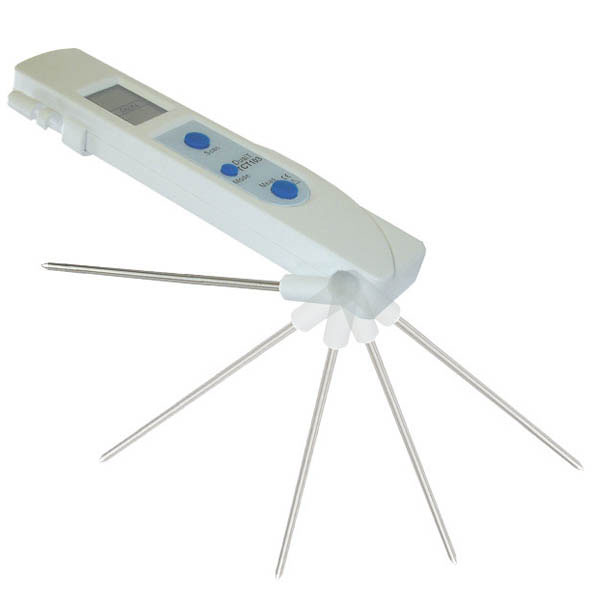 Con sonda de acero Inox para introducir en el horno. De +0ºC a +300ºC.