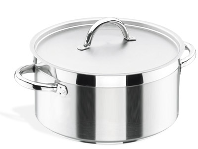 SERIE CHEF LUXE. Inox. 18/10. Borde extra-grueso reforzado. Acabado interior y exterior satinado. Reborde pulido espejo. Mangos y asas soldadas de tubo inox 18/10 hermético, anticalentamiento y ergonómicos. Fondo termodifusor sándwich (inoxidable-aluminio-inoxidable) y fondo capsulado. Fácil limpieza. Certificación alimentaría europea: RGS 3901841/SS.