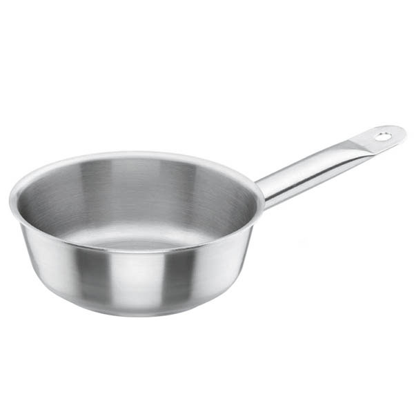 Cazo cónico Chef Classic. Cuerpo de acero inoxidable 18/10 que ofrece una excelente resistencia a la corrosión y a los ácidos alimentarios y sales. Además su borde extra-grueso reforzado permite un vertido perfecto.