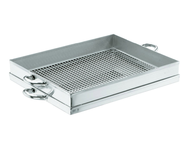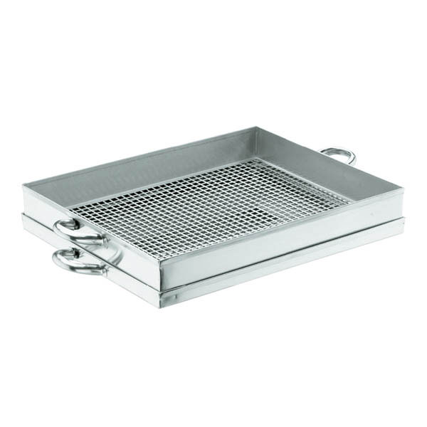 Escurrefritos rectangular fabricado en acero inoxidable 18/10. Con bandeja para recoger el aceite escurrido.