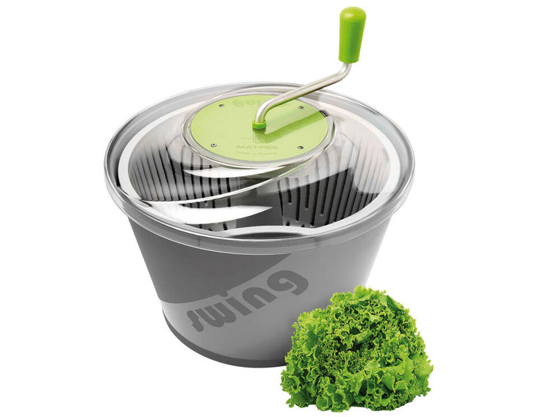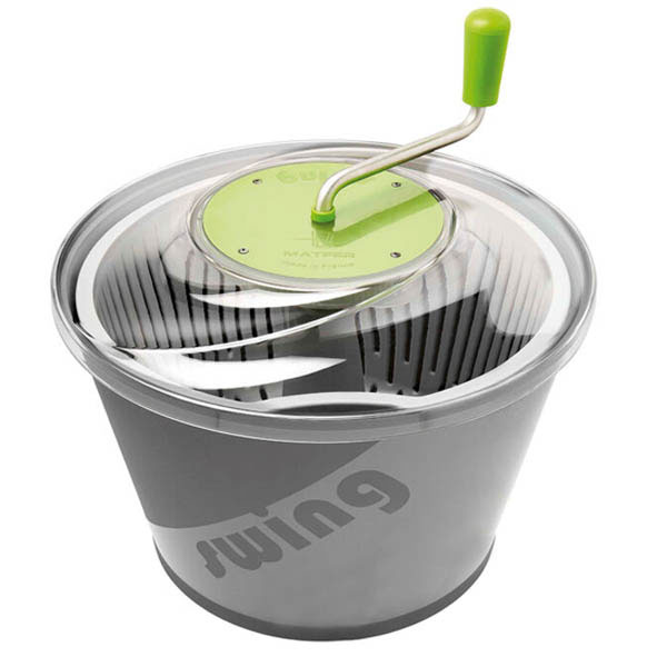Escurreverduras Swing. Cuerpo y cesta de polipropileno. Cubierta de policarbonato transparente. Fácil de usar: la forma baja y ancha proporciona una gran estabilidad y la reducción del engranaje permite una mayor flexibilidad y un menor esfuerzo en la biela. Incluye tubo evacuación.. Cesta grande y aireada.