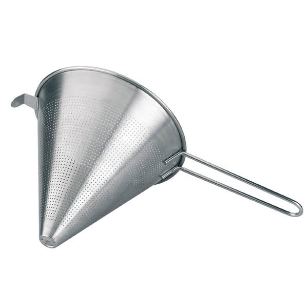 Colador cónico fabricado en acero inoxidable 18/10 con mango de varilla. Adecuado para el procesamiento de alimentos. Es apto para el lavavajillas.