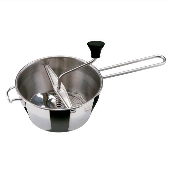 Pasapurés mini. Versátil, cómodo y fácil de usar. Patilla de apoyo, mango de varilla y pomo ergonómico.Posibilidad de Disco fijo o 2 discos intercambiables con orificios de 2 o 3 mm para conseguir texturas diferentes. Cuchilla desmontable para facilitar la limpieza. Apto para lavavajillas.