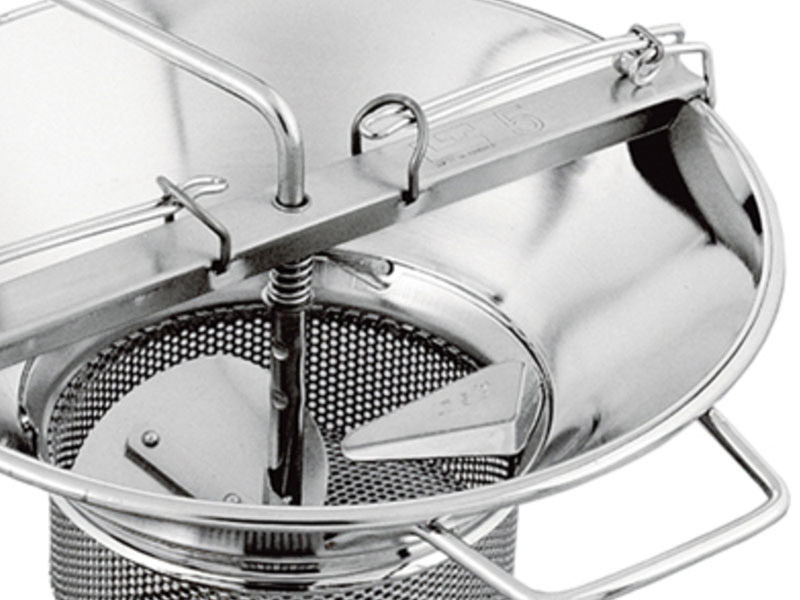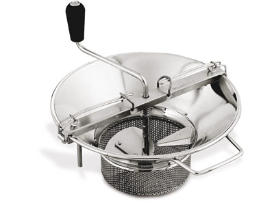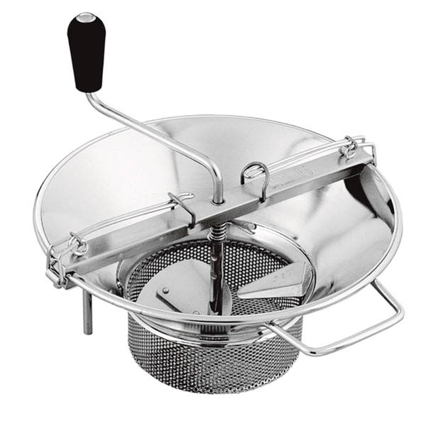 Acero Inox 18/10. Incluye 3 rejillas (1,5, 2,5 y 4 mm). Ø rejillas 14 cm. Producción: 1 a 1,5 kg de puré/min.