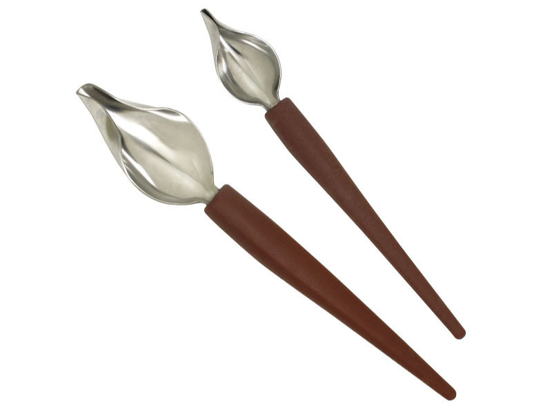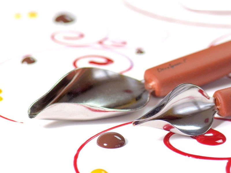 Para decorar platos con precisión cuando se trabaja con prepraraciones líquidas. Pack de 2 cucharas, una con punta fina y otra ancha.Set de 2 plumas de cuchara (una ancha y otra fina) para decorar platos con precisión cuando se trabaja con prepraraciones líquidas. Cuchara de acero inoxidable y mango de silicona.