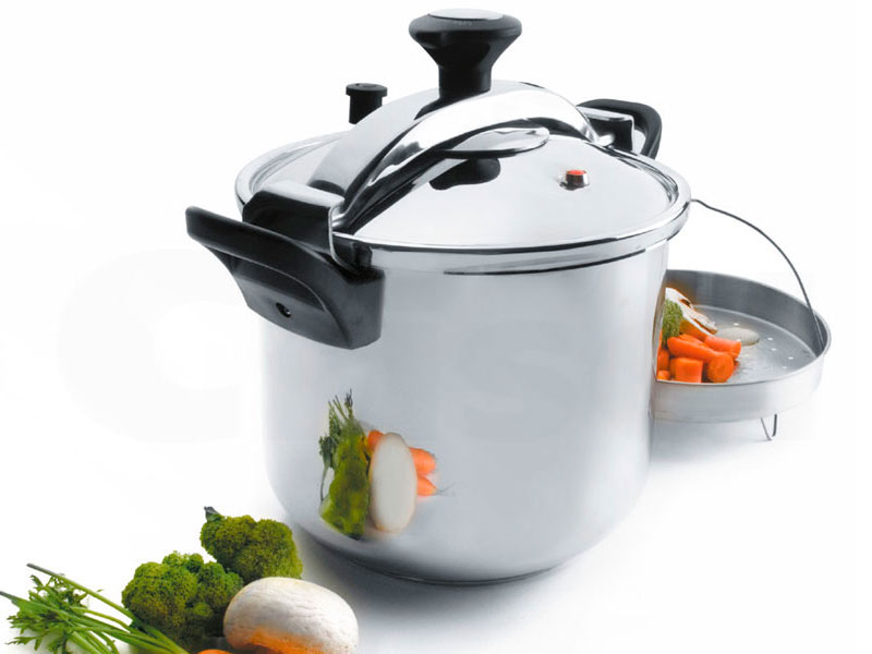Olla a presión Claasic para cocciones sanas y sabrosas con ahorro de tiempo y consumo energético. Acero inoxidable 18/10 con fondo sandwich difusor. Apta para inducción. Marcas de llenado con escala en litros. Apta para limpieza en lavavajillas