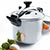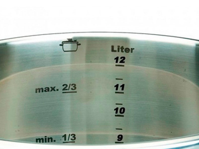 Acero inox 18/10 con fondo sandwich difusor. Apta para inducción. Marcas de llenado con escala en litros.