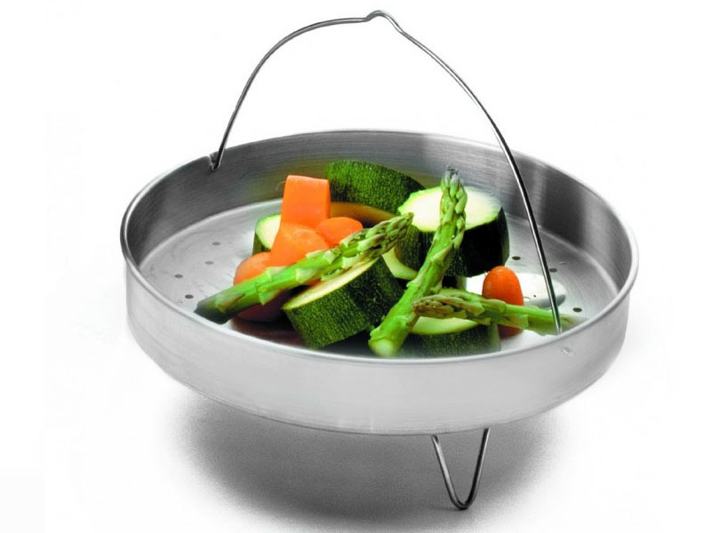 Las ollas de Ø26 cm incluyen cestillo y trípode para cocinar al vapor.
