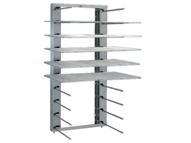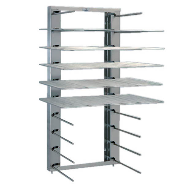 Acero Inox. Para placas. Fondo plegado 53 mm, desplegado 380 mm. Hasta 10 Kg. por nivel. 10 niveles con separaciones de 90 mm. Estantería plegable. Acero inoxidable. Para placas. Fondo plegado 53 mm, desplegado 380 mm. Hasta 10 Kg. por nivel. 10 niveles con separaciones de 90 mm.