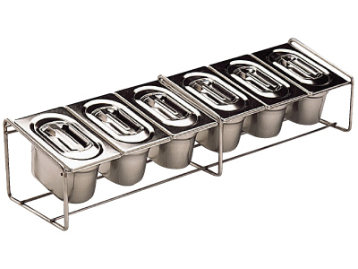 No incluye cubetas. Puede contener: 6 cubetas GN 1/9, o 4 GN 1/6, o 2 GN 1/3 de profundidades 65 o 100 mm.