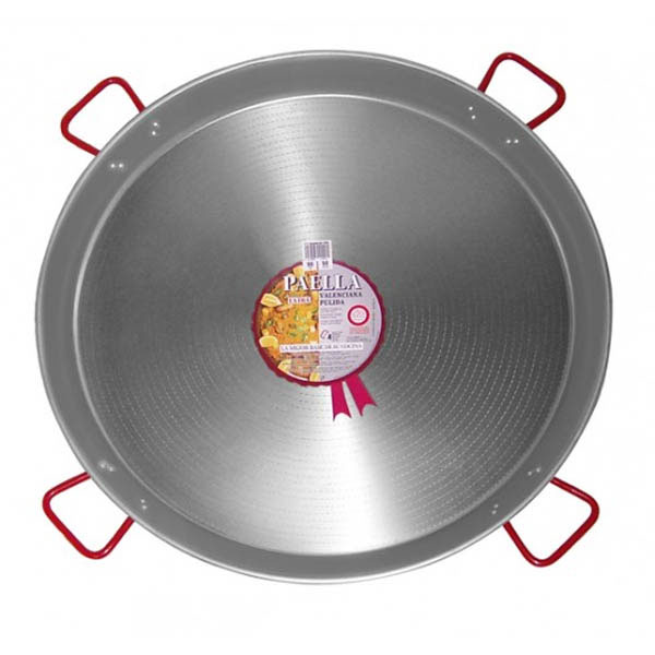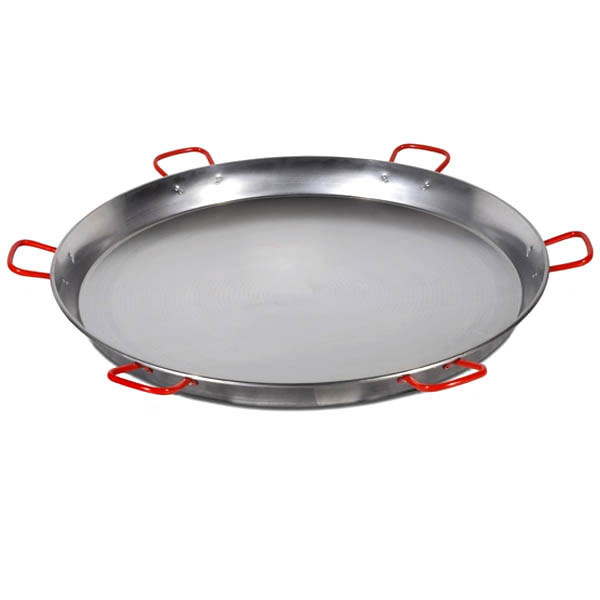 Paella valenciana de hierro pulido. Remaches de acero. Para fuego y leña. Se puede utilizar con leña y en cocinas o paelleros de gas