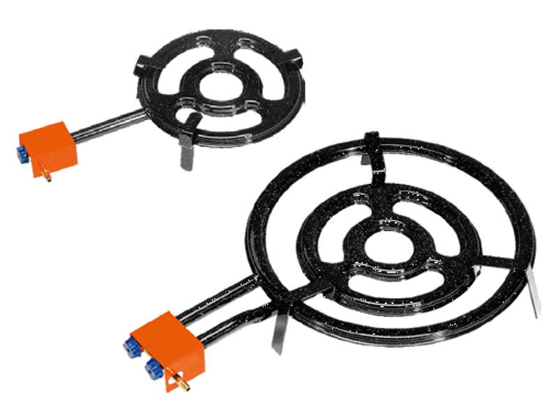 Quemador Paellero +Gas: tubos planos que proporcionan una doble salida de llama lateral.
