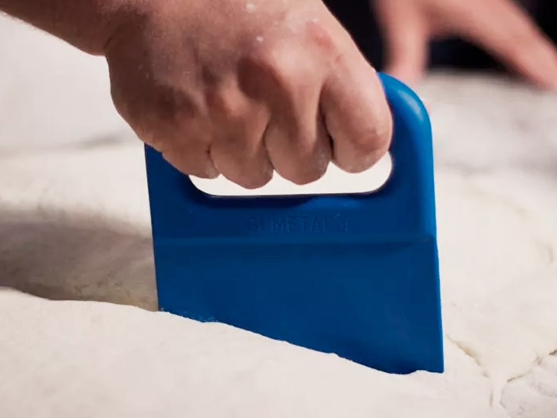 Cortador de pasta, íntegramente fabricado en polímero de alta resistencia al calor, a los golpes y al rayado. Certificado para uso alimentario.