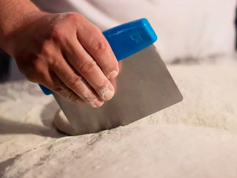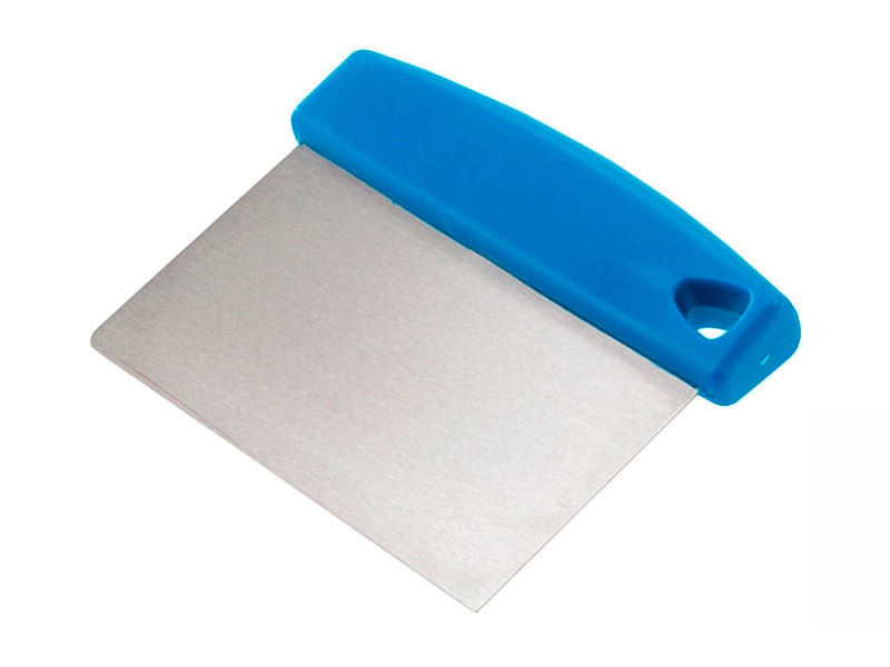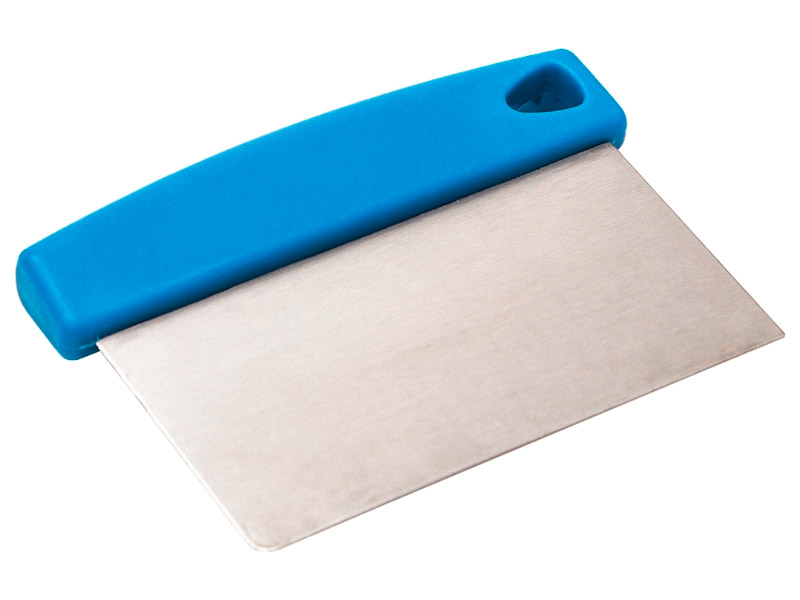 Cortador de pastas de acero inoxidable apto también para la limpieza de la encimera. Mango ergonómico, mango de plástico, certificado alimentario.