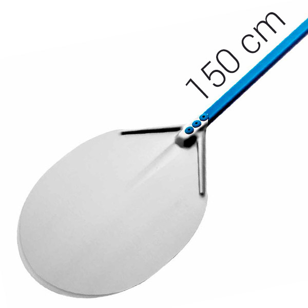 Pala perforada Azurra. Esta línea se distingue por ofrecer palas y paletinas de alta calidad para pizzaiolos profesionales, combinando ligereza, resistencia y flexibilidad. la Linea Azzurra se posiciona como la opción ideal para el pizzaiolo profesional que busca mejorar la eficiencia, la comodidad y la precisión en su cocina, asegurando al mismo tiempo una durabilidad y un diseño ergonómico superior. Fabricadas con cabezales de aluminio anodizado neutro y mangos anodizados en azul, estas herramientas están diseñadas para mejorar la experiencia de preparación de pizzas.