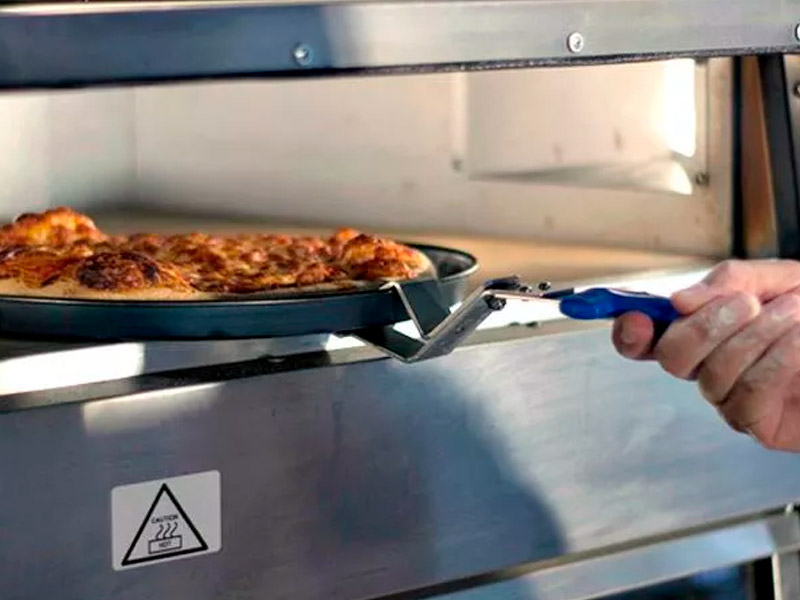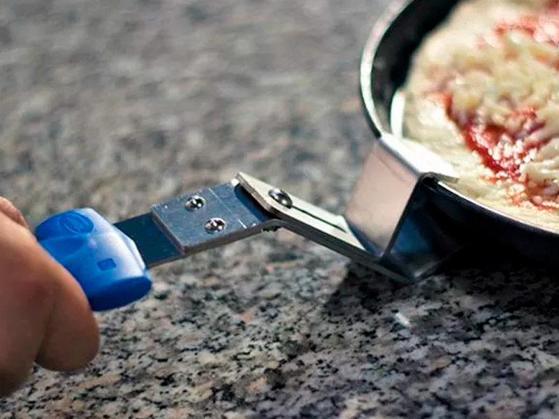 Pinzas para hornear de acero inoxidable con mango de polímero resistente al calor. Es ideal para manipular bandejas de cualquier tamaño y profundidad. Un tornillo en el cuerpo del objeto permite ajustar su altura en función de la altura del borde. El diente superior le permite agarrar con seguridad la sartén y tirarla hacia usted.