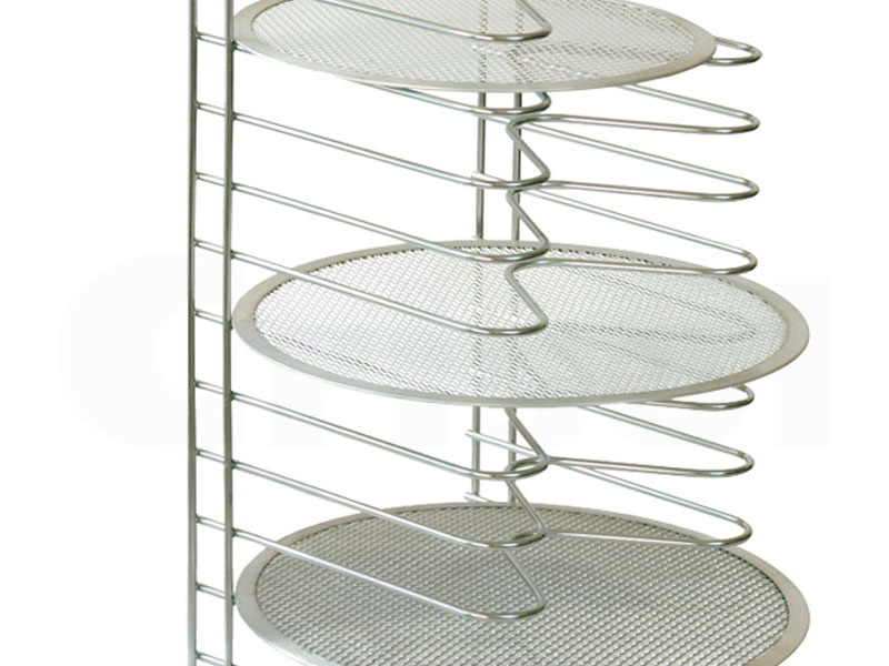 Soporte platos preparados de mesa o mural. Carga máxima por nivel 4 Kg. 10 Niveles: para 20 platos de 20-32 cm ó 30 platos menores a 20 cm de diámetro.