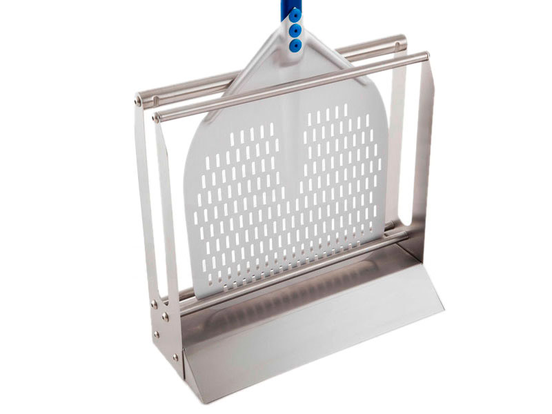 Soporte para palas, realizado totalmente en acero inoxidable. Tira de silicona para una mayor protección de la paleta. Práctica y funcional permite apoyar la paleta en un espacio reducido.