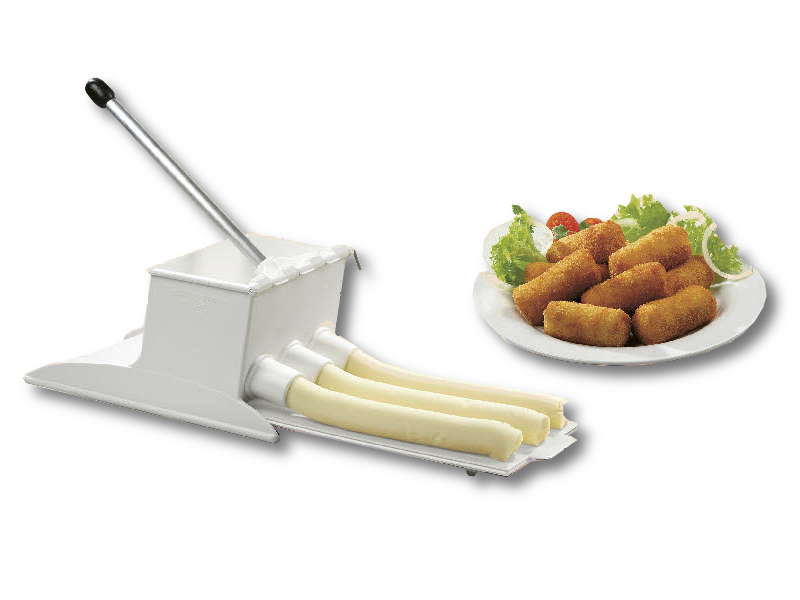 Maquina domestica para hacer croquetas "Millecroquettes". Con esta prensa para croquetas tienes listas las croquetas más ricas en pocos minutos. Especialmente práctica con bechameles muy sueltas. Plástico resistente libre de BPA y acero. Apta para lavavajillas.