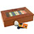 Cajas de madera (clara u oscura) con ventana transparente. Cuadrado. Capacidad 144 bolsitas.