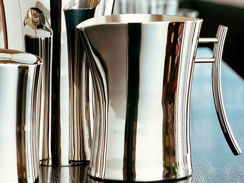 Apilables. Con filos en relieve. Metal cromado. No apto para lavavajillas.