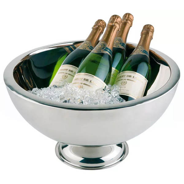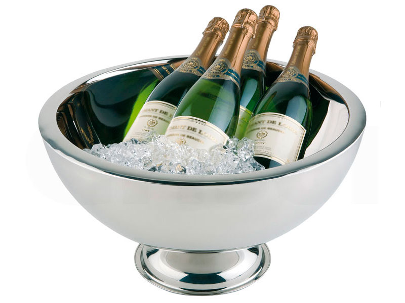 Champanera de acero inoxidable con asas fijas. Resistente y duradera.