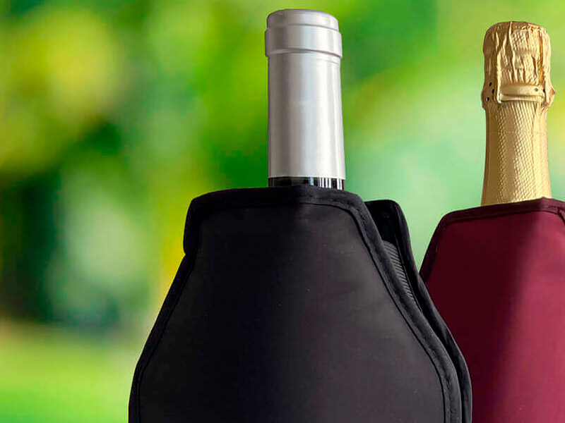 Funda enfríabotellas. Complemento perfecto para mantener las bebidas frías durante las comidas. Simplemente almacenar en el congelador antes de usarla y estará lista para enfriar cualquier botella estándar al instante. Fabricada con tejido, fieltro y un revestimiento termosellado que encierra el gel refrigerante, esta funda de nylon de alta calidad garantiza que su bebida se mantenga a la temperatura ideal durante más tiempo.