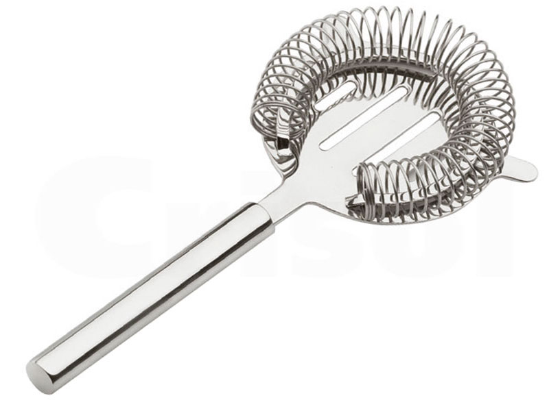 Con muelle desmontable para mantener los cubitos en la coctelera. Se adapta a todos los tipos de vasos y cocteleras. Ø9 cm. Largo 18 cm.