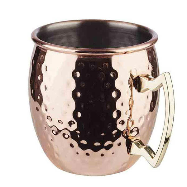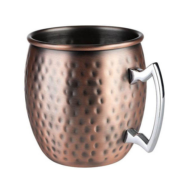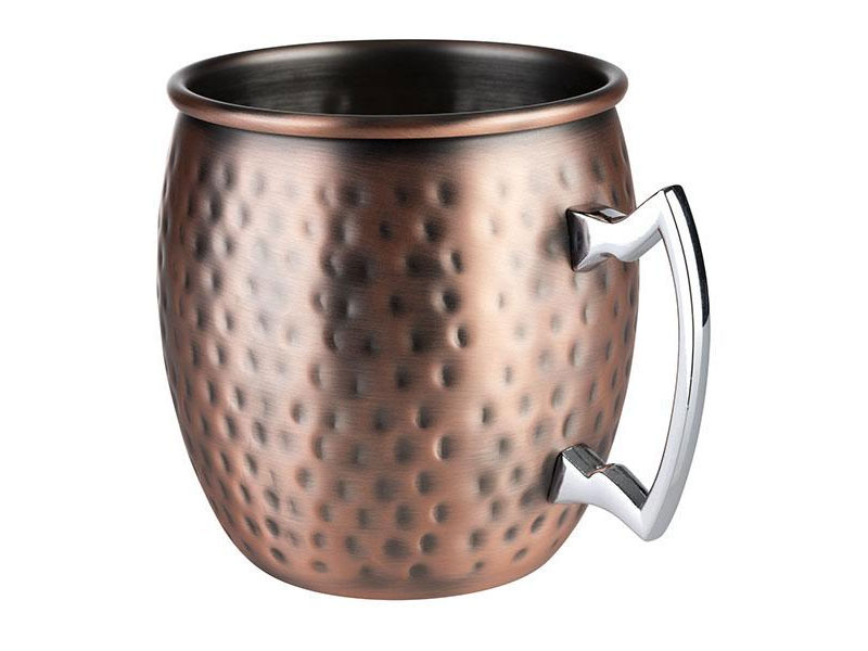 Jarra coctelera en acero inoxidable con un estilo antiguo. Abombada con decoración amartillada. Asa de color inox. Exterior cobre pulido brillante o envejecido. La pared interna es aislante y se encarga de mantener la bebida helada. Ideales para servir cócteles, cerveza, sidra, vino o ginebra.
