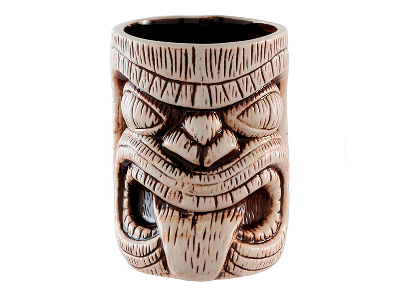 Mug Tiki que evoca la atmósfera de Hawaii y Polinesia. Un diseño creativo, fabricado en cerámica, resistente y duradero. Históricamente se consideran "Tiki" a las vasijas que se ofrecían a los dioses.