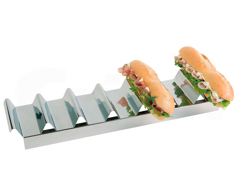 Expositor para bocadillos. Capacidad para 7 bocadillos. Acero inosidable acabado pulido brillante.