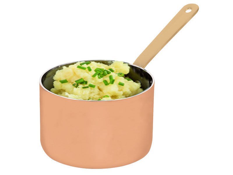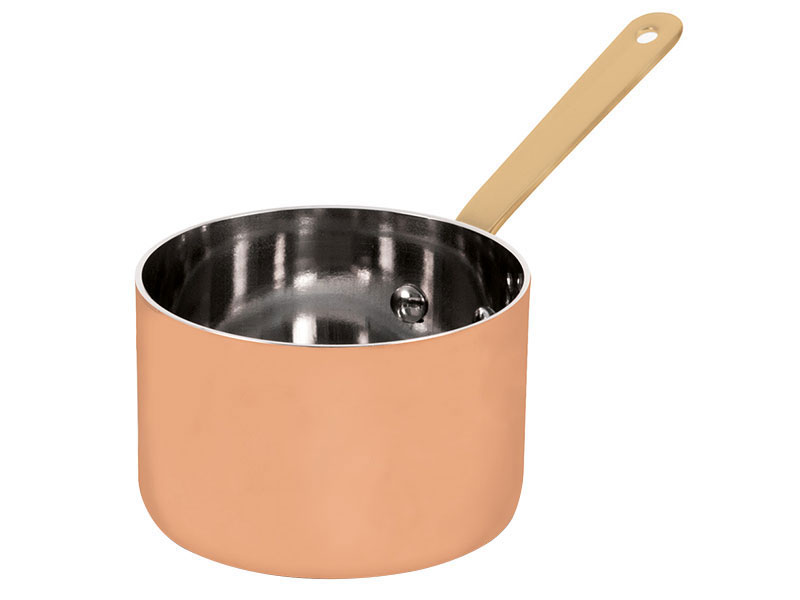 Inox 18/0. Apilables y lavables. Disponibles sin asas o con asas de latón doradas o cromadas, con o sin campana PE.