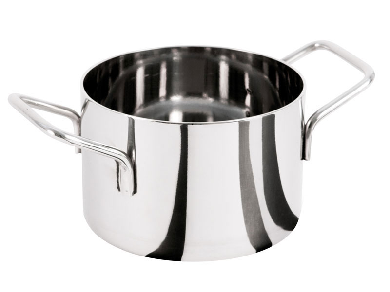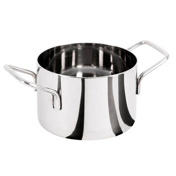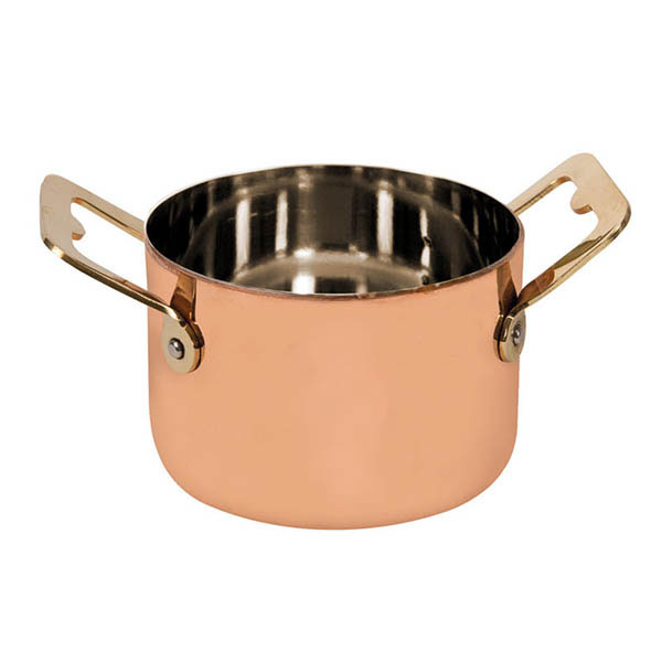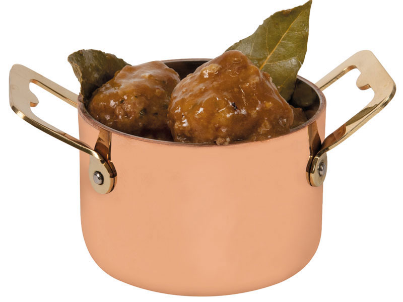 Miniolla en acero inoxidable con prácticas asas. Resistentes, originales y prácticas. Perfectas para servir directamente. Presentaciones que no dejaran a tus comensales indiferentes. Versión en acabado Inox o cobre.
