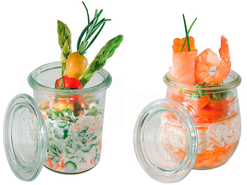 Degustación Vidrio. Pack de 12 tarritos rectos con tapa.Tarritos de cristal Wecks, rectos con tapa. Pack de 12 tarros. 3 tamaños diferentes. Tarritos de degustación con la clásica forma de los tarros de conserva.