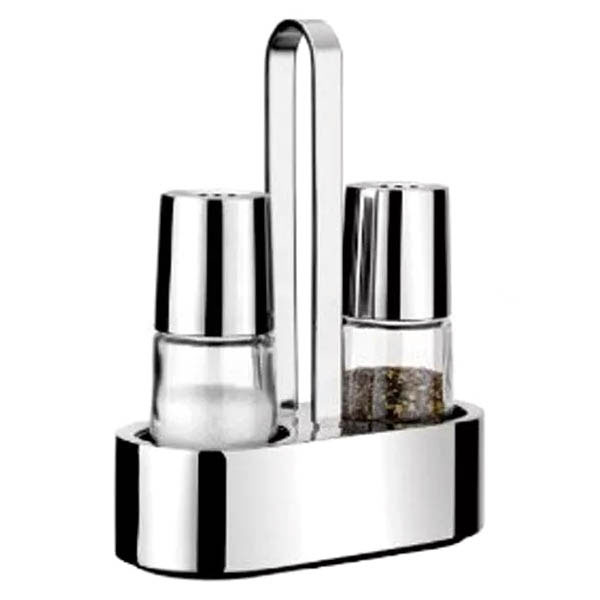 Set de salero y pimentero, acero inoxidable 18/10 y vidrio.