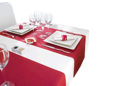 Caminos de mesa de 40 x 120cm. En rollos de 48 metros, precortados a 120 cm. 40 caminos precortados por rollo. Tejido sin tejer 100% polipropileno de 60g/m2.