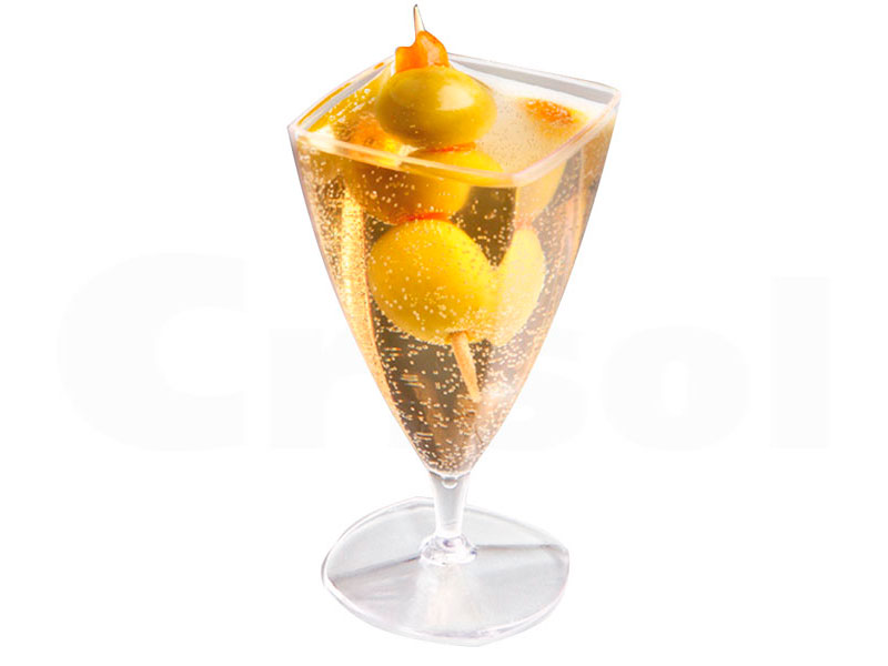 23 cl Ø64 mm Alt. 102 mm. Policarbonato transparente, aspecto cristal. Ideal para bares de playa o piscina.