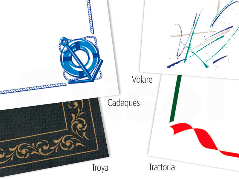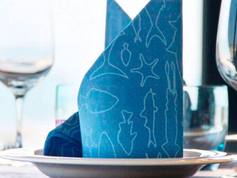 Servilletas Double Point decoradas. Servilletas 2 capas celulosa 2 x 18 gr/m2. Plegado 1/4. Paquetes 50 unidades. Cajas de 24 paquetes.
