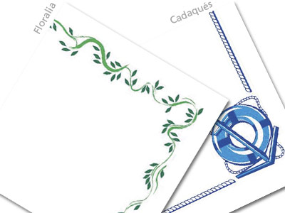 Servilletas blancas con decorado Orla Plus. 2 capas (2 x 18 gr/m2). Plegado 1/4. Paquetes 50 unidades. Cajas de 24 paquetes.