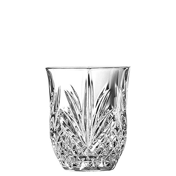 Los llamativos efectos de cristal tallado añaden una elegante sofisticación al servicio de bebidas con un toque vintage.