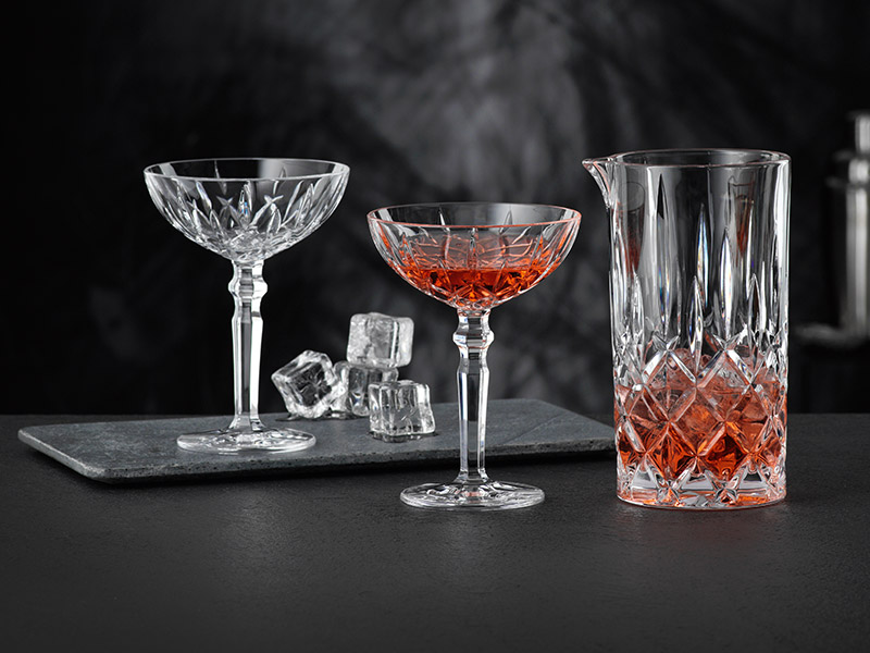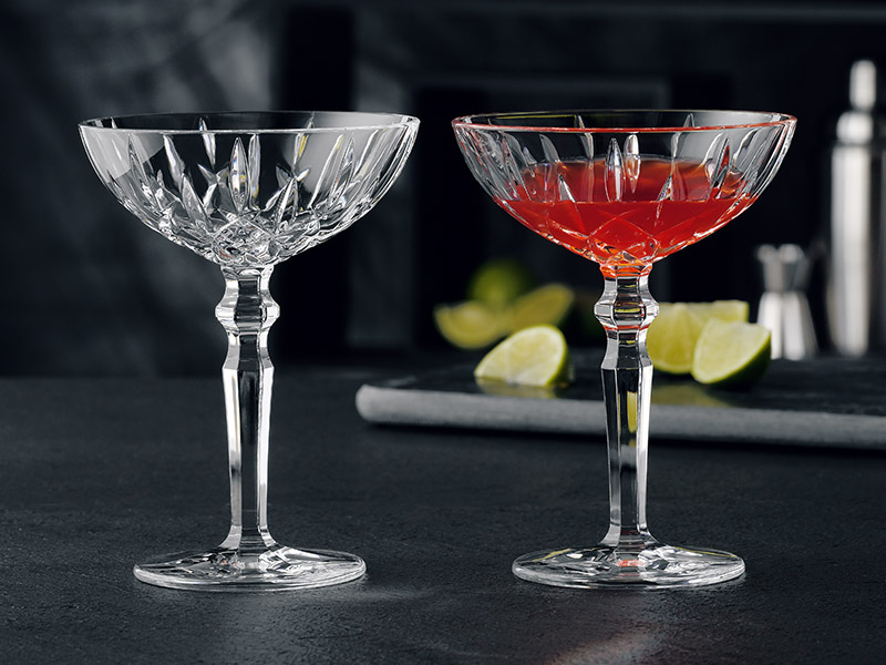 Las curvas sensuales de esta copa brindan una pieza elegante para su Martini favorito. La cristalería Noblesse también agrega acentos brillantes a los postres y cócteles. Su decoración, con un estilo lujoso y de porte clásico, añade un toque de refinada elegancia.