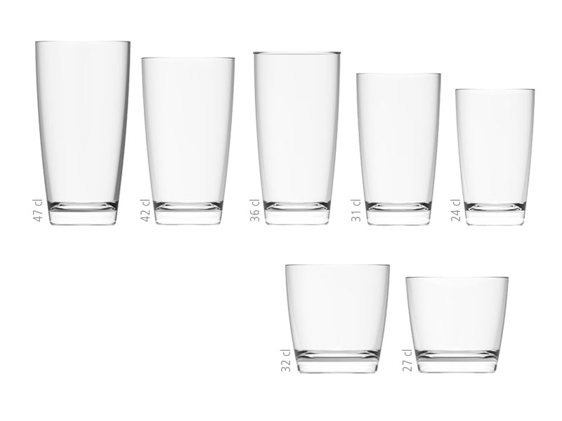 Colección de vasos Caña Lisa. Vidrio templado. Diseño minimalista y esbelto.